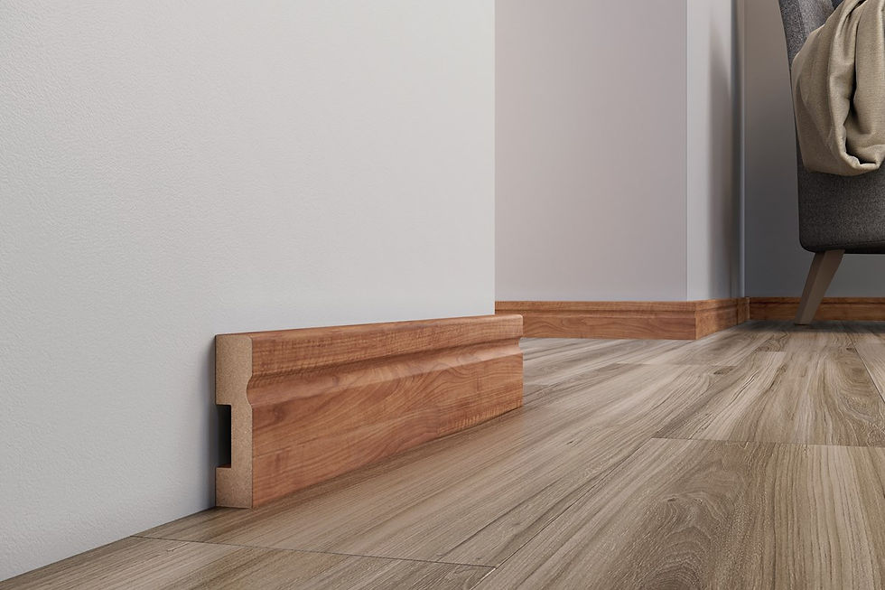Os rodapés em MDF são conhecidos por sua durabilidade e resistência a impactos, garantindo um acabamento que se mantém intacto por muito tempo.